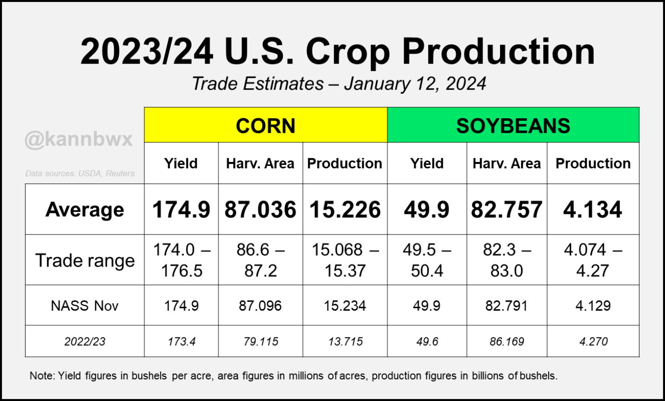 CONAB ước tính sản lượng bắp của Brazil thấp hơn 925.000 tấn do diện tích gieo trồng vụ đầu tiên giảm, với dự báo sản lượng vụ đầu tiên đạt 24,4 triệu tấn, và dự kiến vụ thứ 2 đạt với 91,2 triệu tấn. Tổng sản lượng cả hai vụ trong năm 2023/2024 ước tính ở mức là 117,6 triệu tấn, giảm so với mức 132 triệu tấn cùng kỳ năm ngoái và thấp hơn 11,4 triệu tấn so với dự báo của Bộ NN Mỹ.
