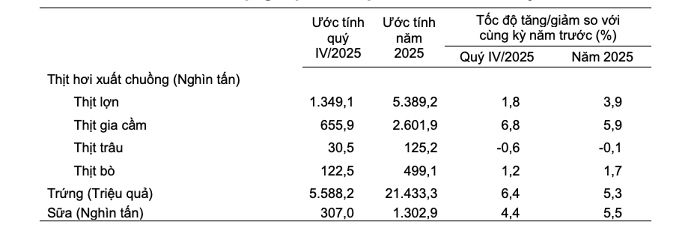 Theo số liệu của Cục Thống kê, lượng thịt heo xuất chuồng trong quý IV/2025 tăng 1,8% so với cùng kỳ năm ngoái lên 1,35 triệu tấn. Tính chung cả năm 2025, lượng heo xuất chuồng tăng 4% lên gần 5,4 triệu tấn.